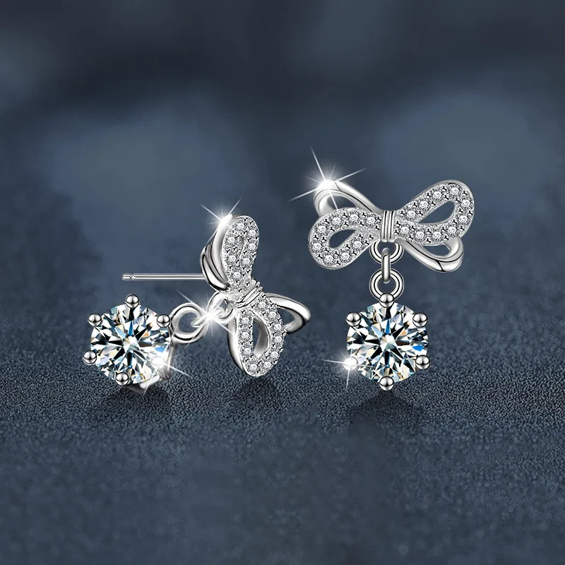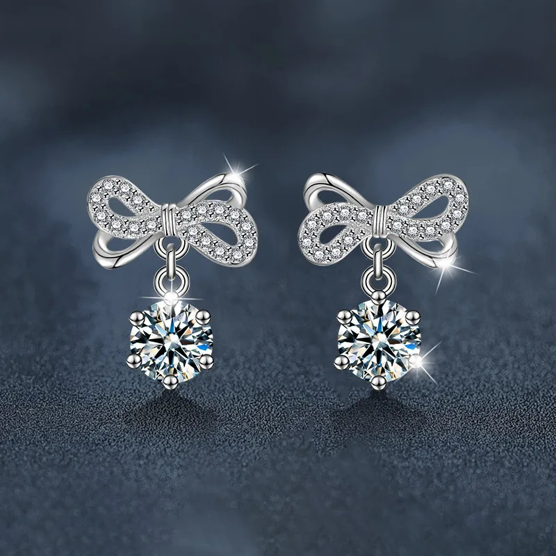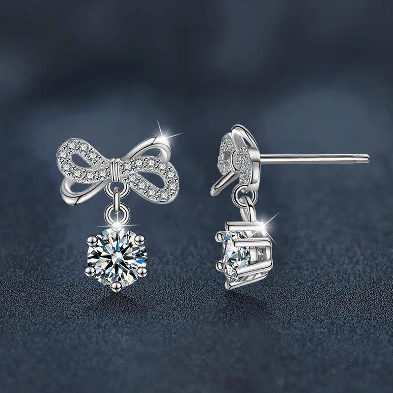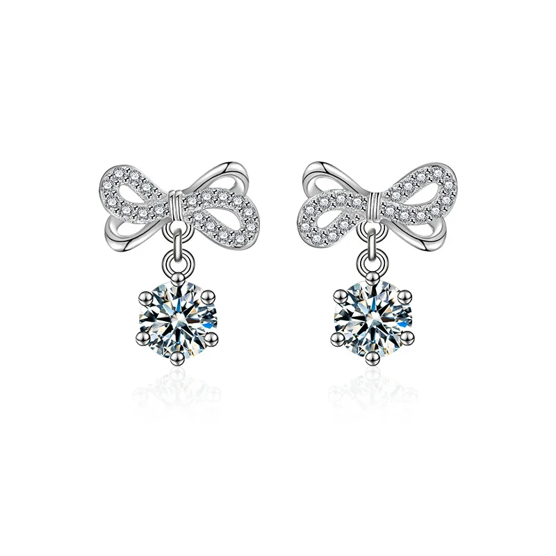 Bông tai bạc nữ đính kim cương Moissanite Luciana – Vẻ đẹp tinh khôi từ chiếc nơ sang trọng