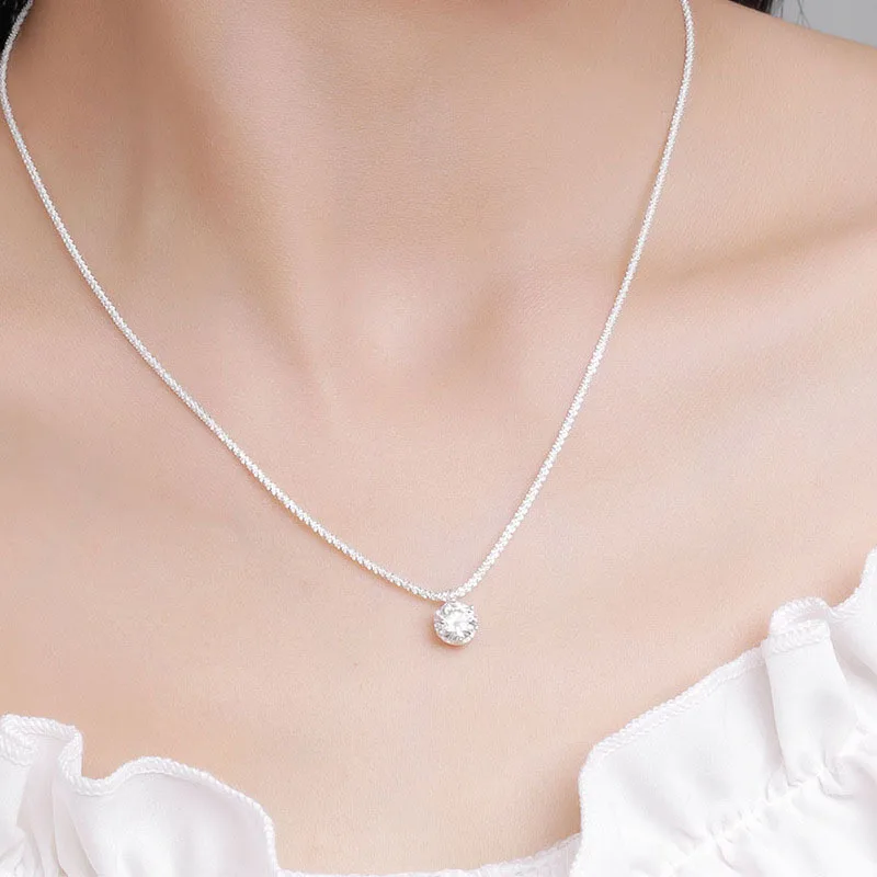 Chế tác từ bạc S925 cao cấp, phần dây xù mềm mại tạo hiệu ứng ánh sáng tự nhiên khi chuyển động, giúp chiếc dây chuyền luôn nổi bật trên cổ. Sự kết hợp giữa bạc sáng bóng và viên Moissanite cao cấp mang lại vẻ đẹp thanh lịch, phù hợp cho cả phong cách thường ngày lẫn những dịp đặc biệt.