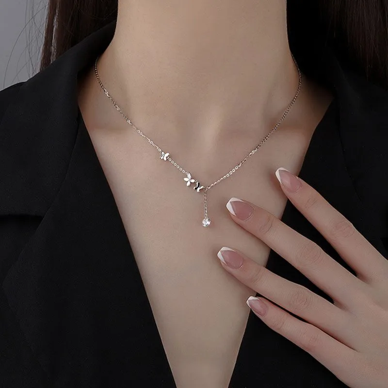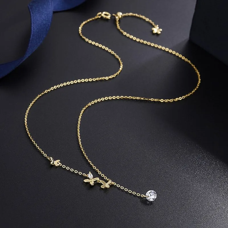 Thiết kế bướm nhỏ thanh thoát kết hợp chi tiết đá Cubic Zirconia lấp lánh rơi nhẹ tinh tế, tạo điểm nhấn mềm mại nơi xương quai xanh. Kiểu dáng mảnh mai, nữ tính, giúp tôn lên vẻ đẹp dịu dàng nhưng vẫn nổi bật trong từng chuyển động.