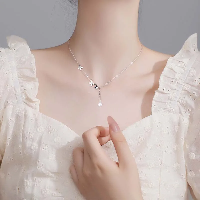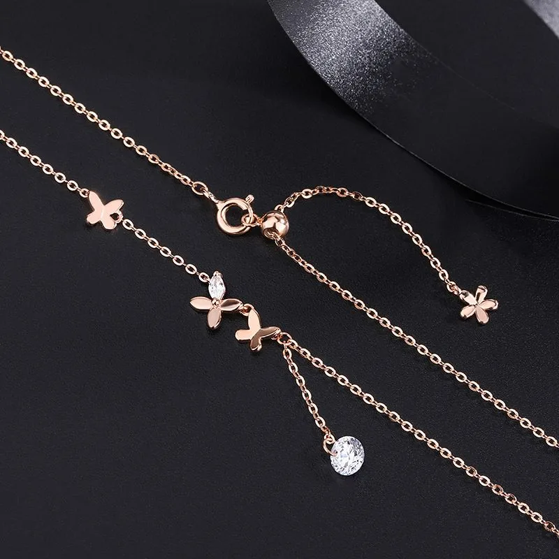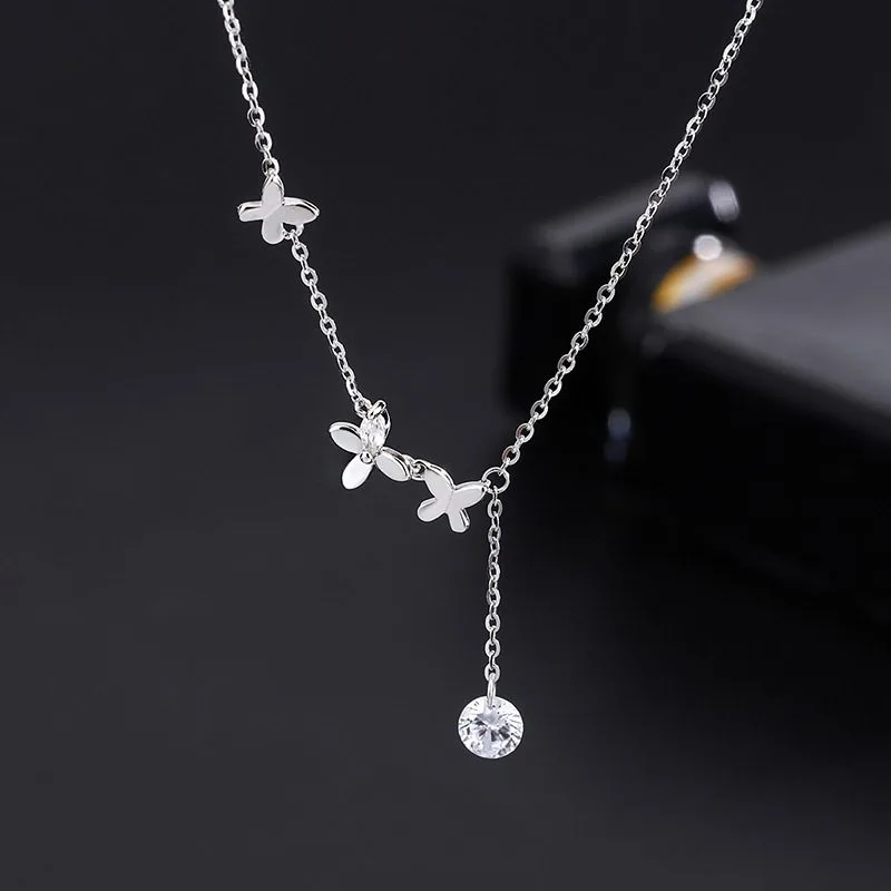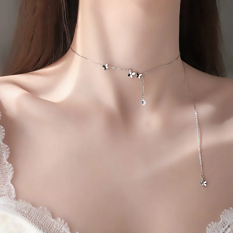 Thiết kế bướm nhỏ thanh thoát kết hợp chi tiết đá Cubic Zirconia lấp lánh rơi nhẹ tinh tế, tạo điểm nhấn mềm mại nơi xương quai xanh. Kiểu dáng mảnh mai, nữ tính, giúp tôn lên vẻ đẹp dịu dàng nhưng vẫn nổi bật trong từng chuyển động.
