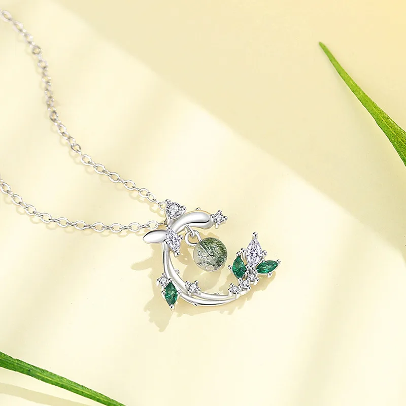 Dây Chuyền Bạc Nữ Đính Đá CZ Cành Và Lá Kiana – Bạc S925 Cao Cấp