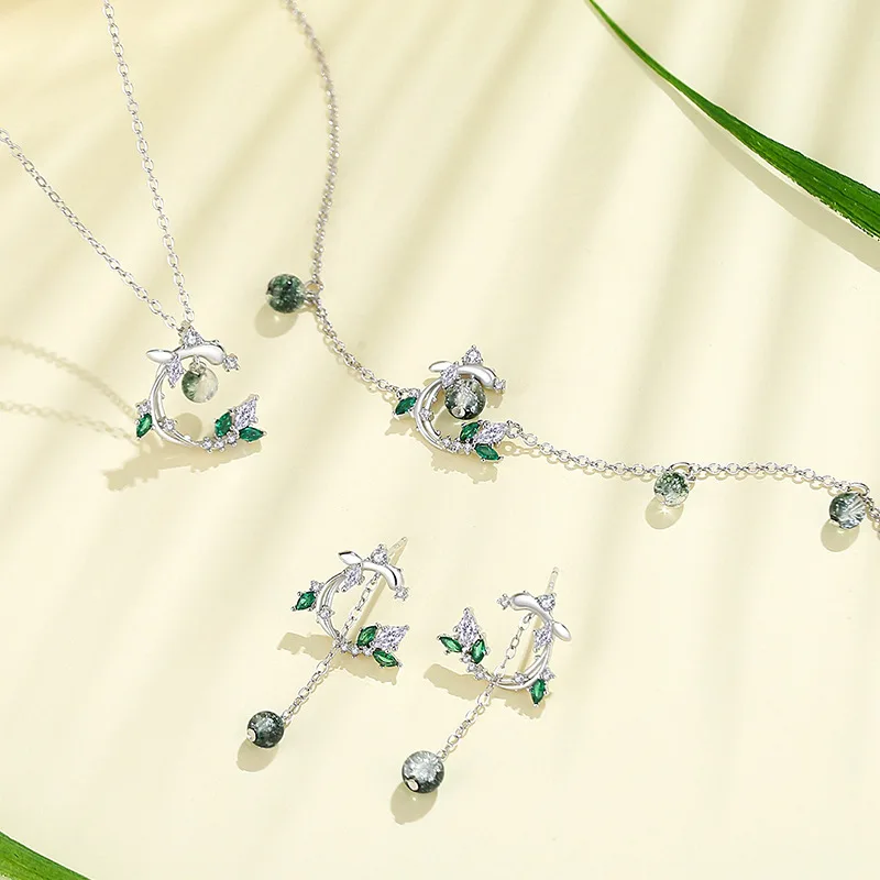 Lấy cảm hứng từ trăng khuyết ôm cành và lá mềm mại, thiết kế tượng trưng cho khởi đầu mới, sự phát triển và vẻ đẹp nữ tính đầy sức sống. Những viên đá Cubic Zirconia lấp lánh được đính tinh xảo như giọt sương mai, phản chiếu ánh sáng rực rỡ theo từng chuyển động, trong khi viên đá tròn đung đưa ở trung tâm tạo điểm nhấn thu hút, tựa trái tim trong trẻo giữa thiên nhiên.