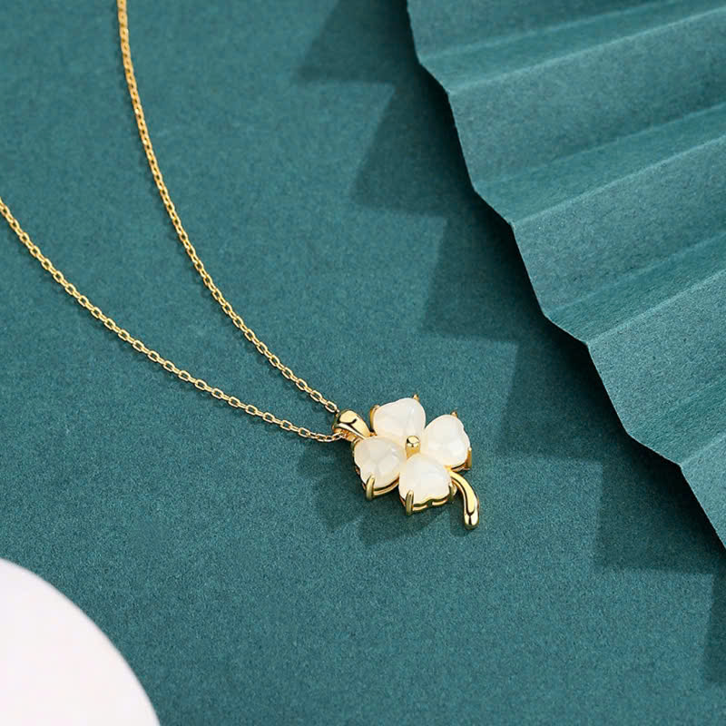 Dây chuyền bạc nữ S925 phủ vàng 18K Kiera DLA745519 – Ngọc bích Hetian & cỏ 4 lá may mắn