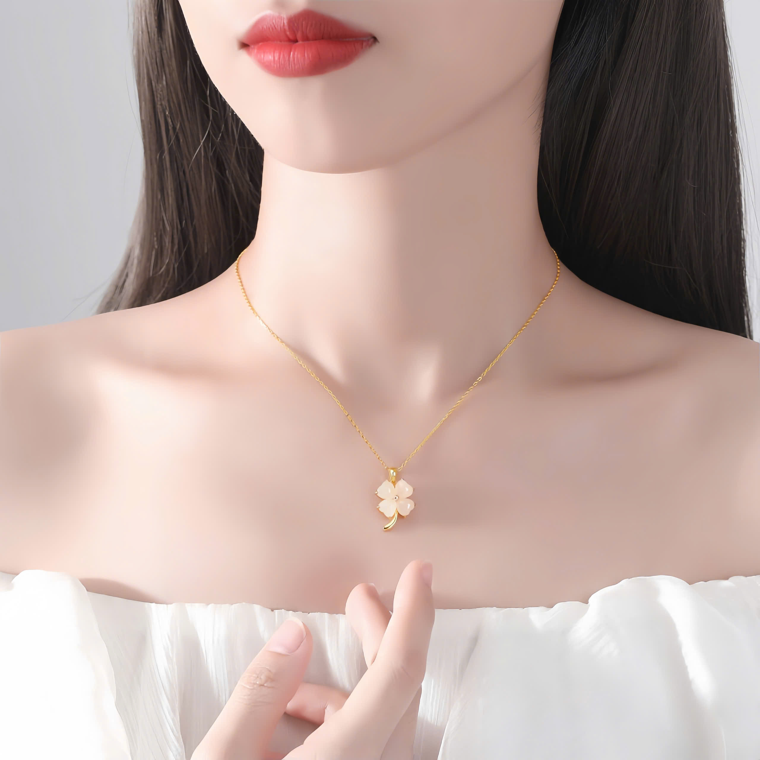Khám phá vẻ đẹp tinh tế và may mắn cùng dây chuyền DLA745519 , được chế tác từ bạc S925 cao cấp phủ vàng 18K sang trọng, kết hợp ngọc bích Hetian lấp lánh đầy quý phái. Điểm nhấn là charm cỏ 4 lá, biểu tượng của sự may mắn, hy vọng và năng lượng tích cực, giúp bạn luôn tự tin tỏa sáng.