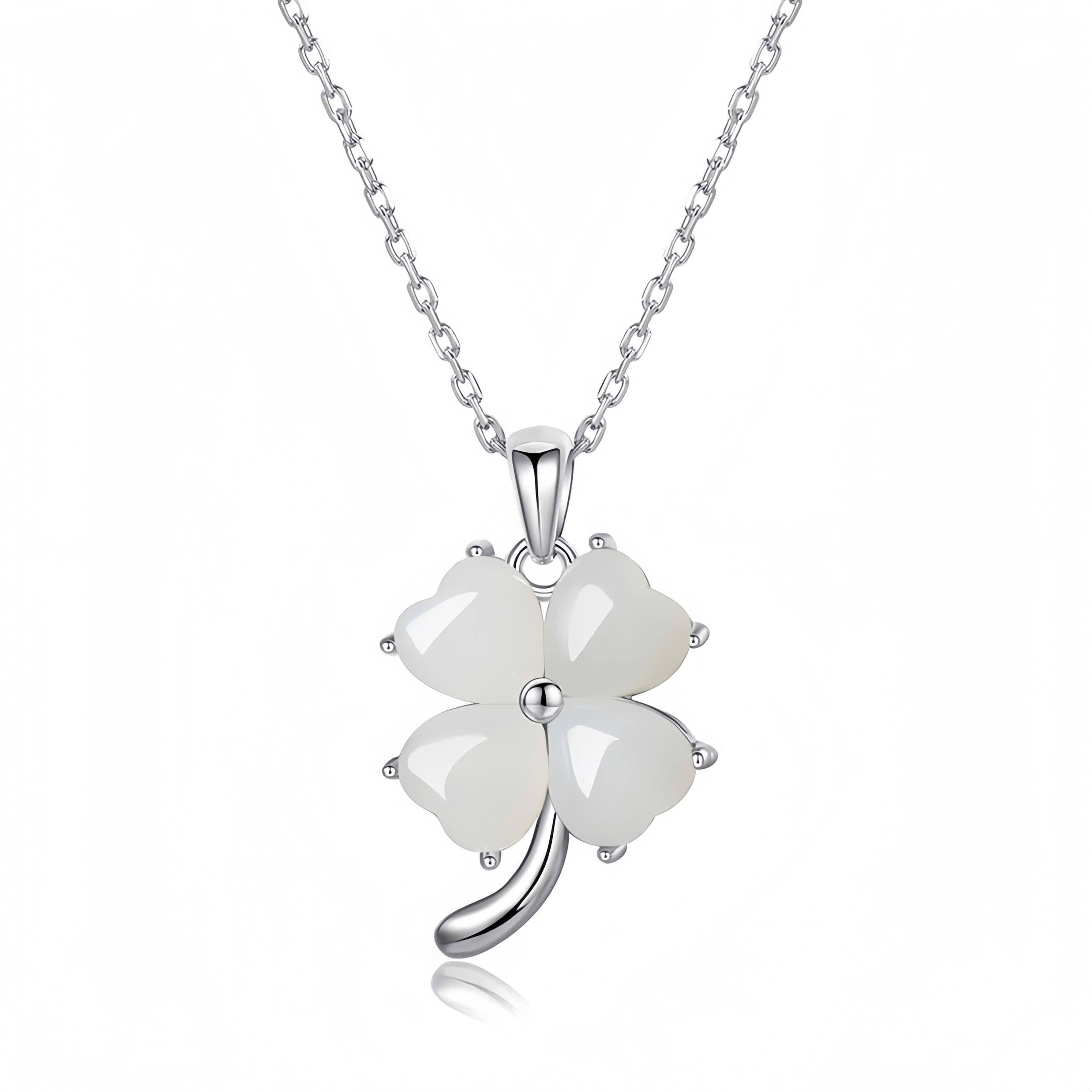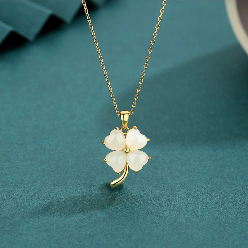 Dây chuyền bạc nữ S925 phủ vàng 18K Kiera DLA745519 – Ngọc bích Hetian & cỏ 4 lá may mắn