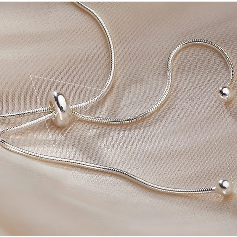 Dây chuyền choker bạc nữ có hạt điều chỉnh độ dài – Bạc S925