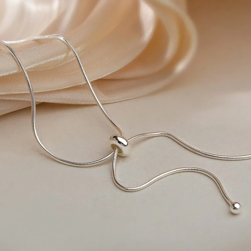 Dây chuyền choker bạc nữ có hạt điều chỉnh độ dài – Bạc S925