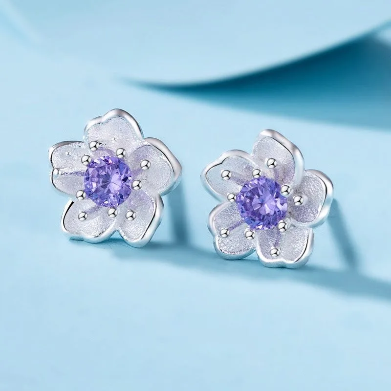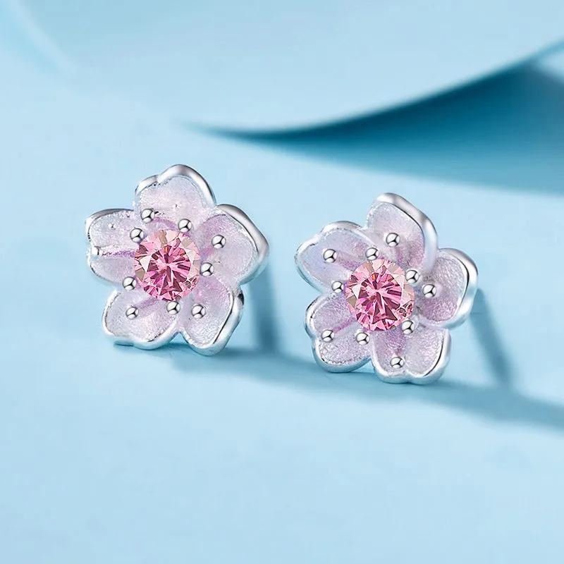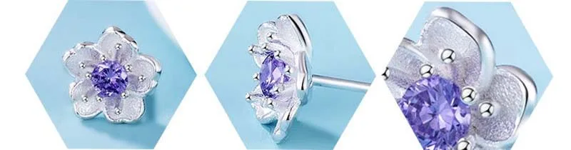 Khuyên tai bạc nữ đính đá CZ hoa anh đào – Nét đẹp thanh tao đầy cuốn hút