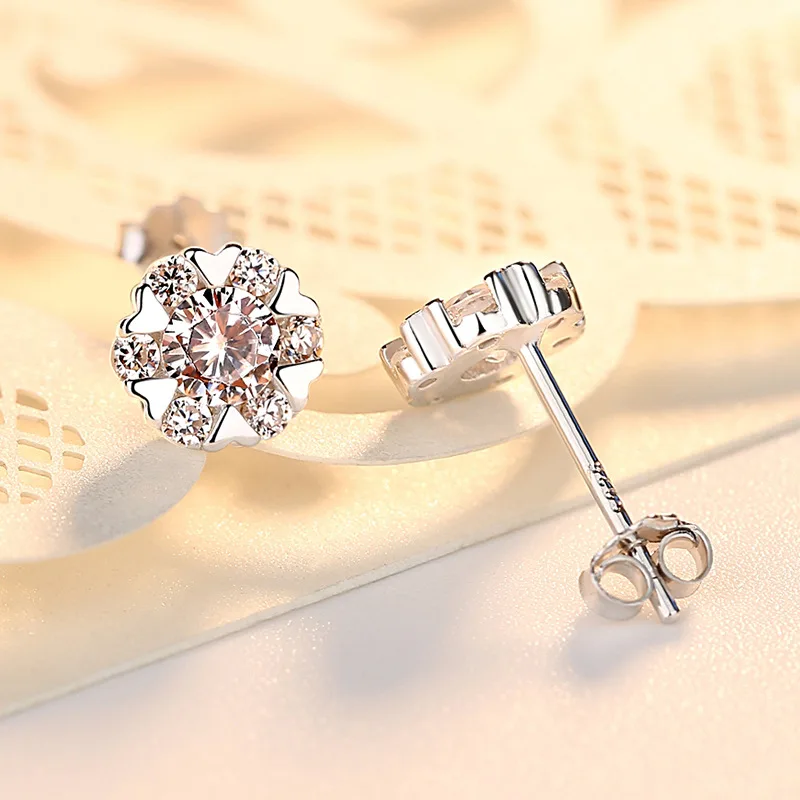 Khuyên tai bạc nữ đính đá CZ hình bông hoa tuyết Calliope DLA212263