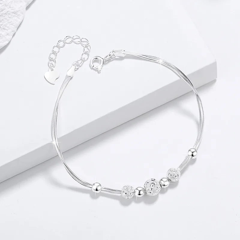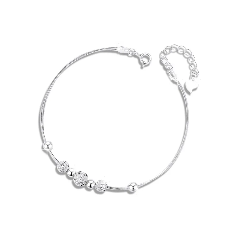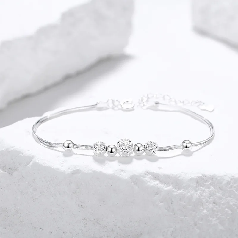 Lắc tay bạc nữ chuỗi hạt tròn Cassidy – Bạc S999 thanh lịch
