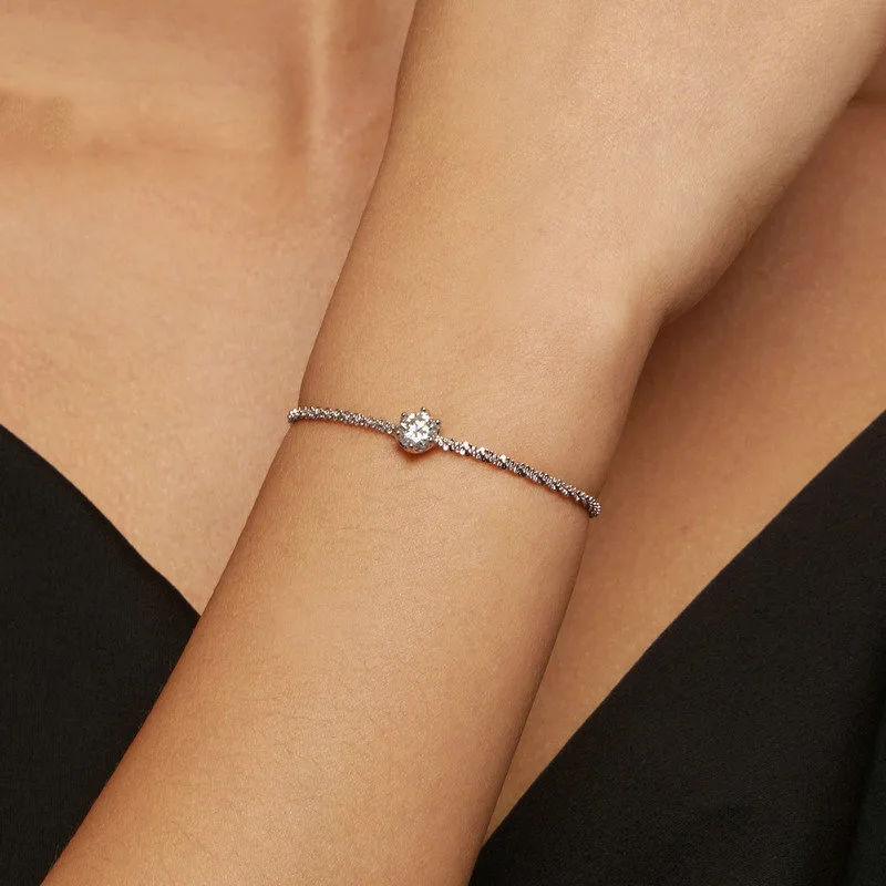 Lắc tay bạc nữ dây xù đính kim cương Moissanite Sunny DLA104614 – Bạc S925 Sang Trọng