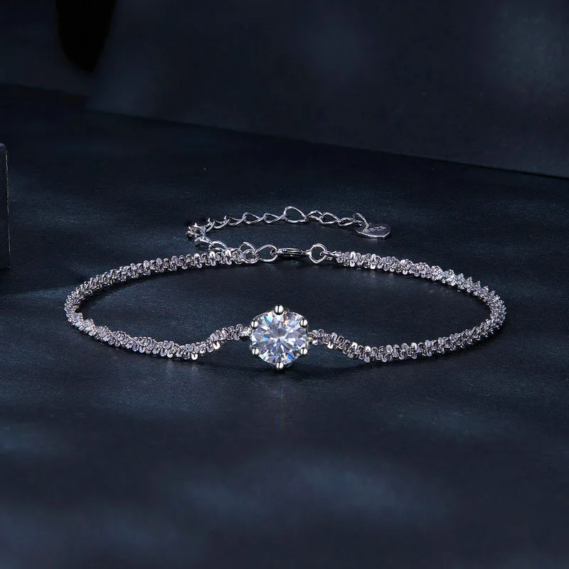 Lắc tay bạc nữ dây xù đính kim cương Moissanite Sunny DLA104614