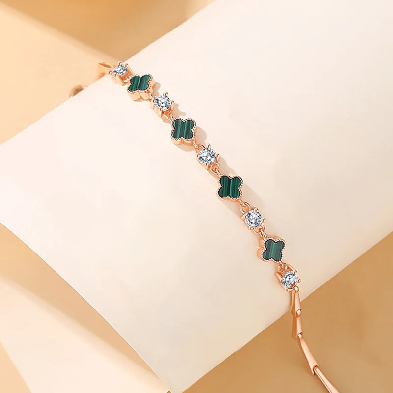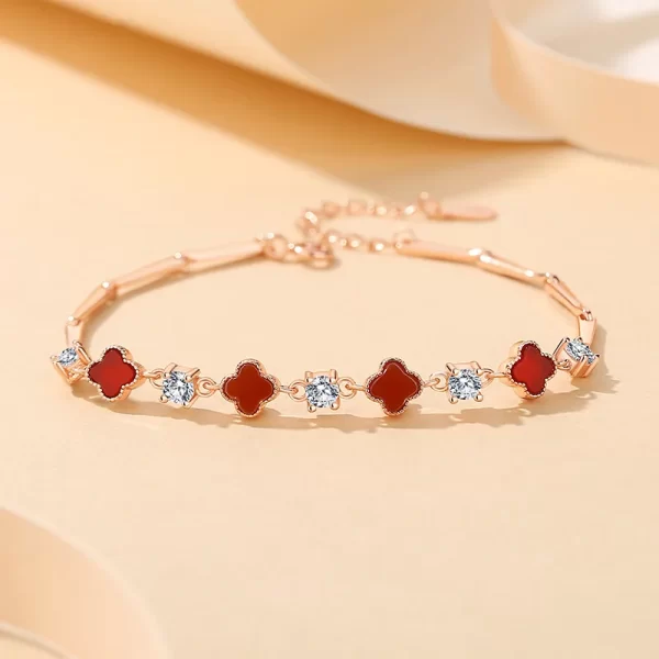 Thiết kế cỏ 4 lá biểu tượng cho may mắn, hạnh phúc và hy vọng, được kết hợp hài hòa cùng những viên đá Cubic Zirconia lấp lánh, tạo nên điểm nhấn tinh tế và sang trọng cho cổ tay. Kiểu dáng thanh mảnh, nữ tính giúp chiếc lắc tay dễ dàng tôn lên vẻ đẹp nhẹ nhàng nhưng vẫn nổi bật.