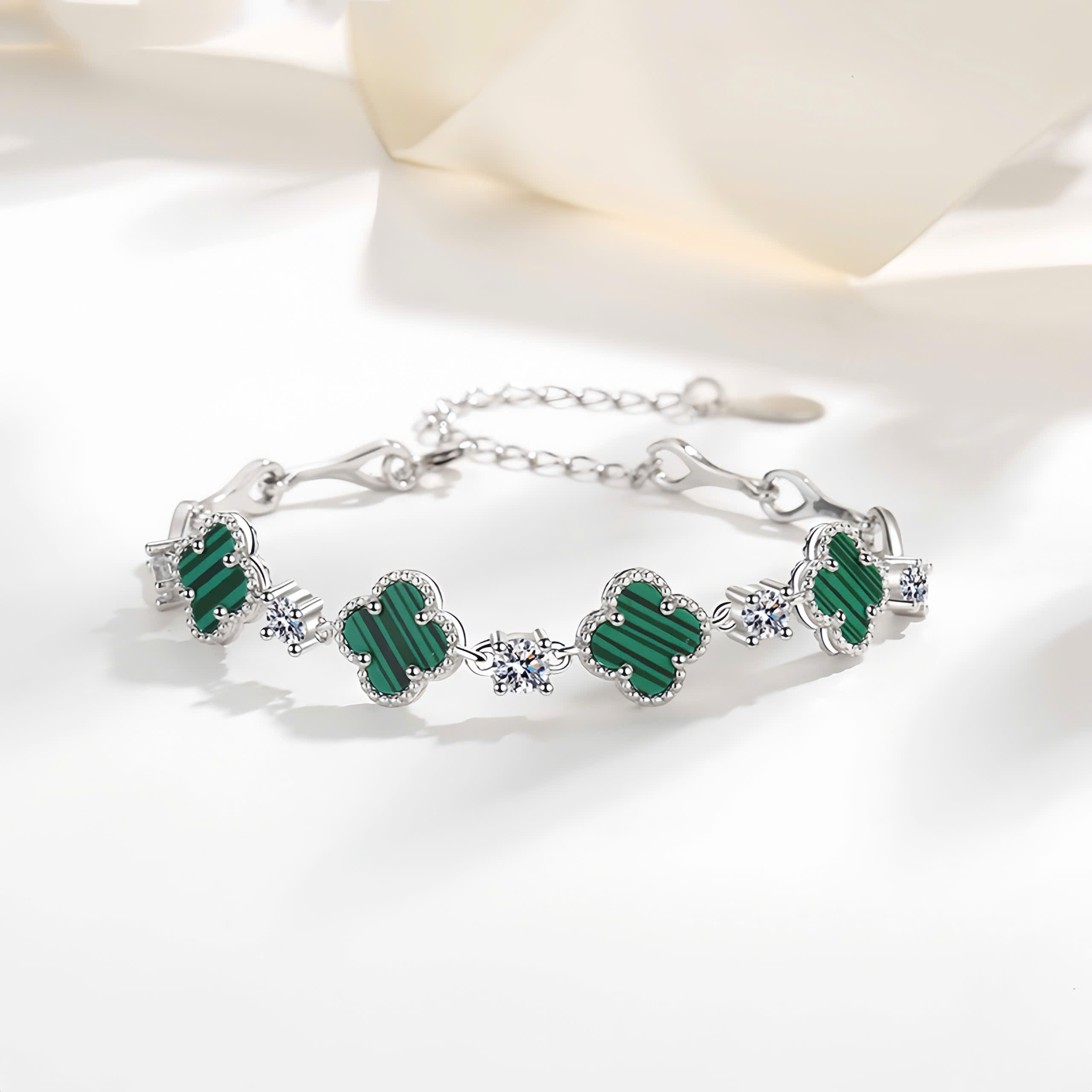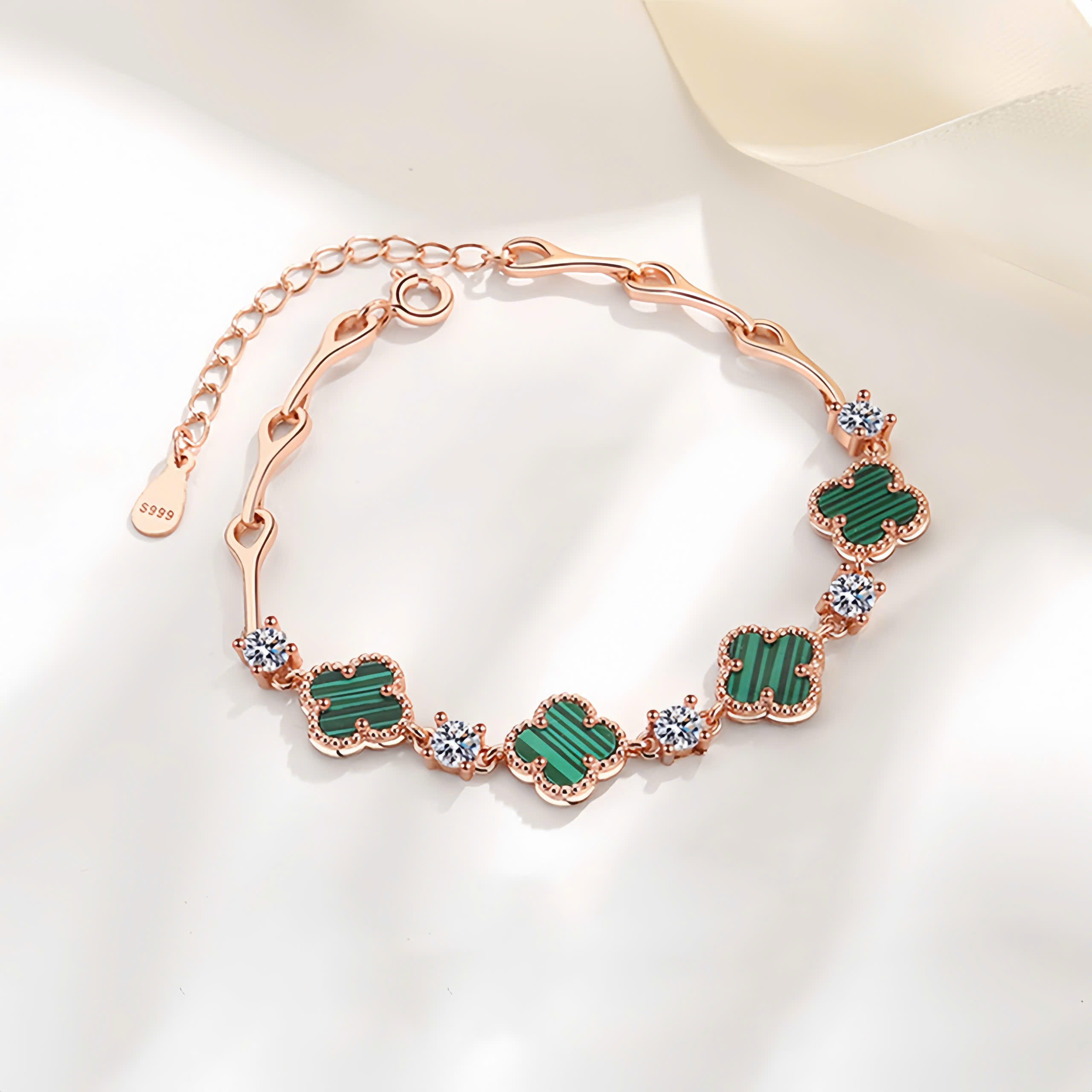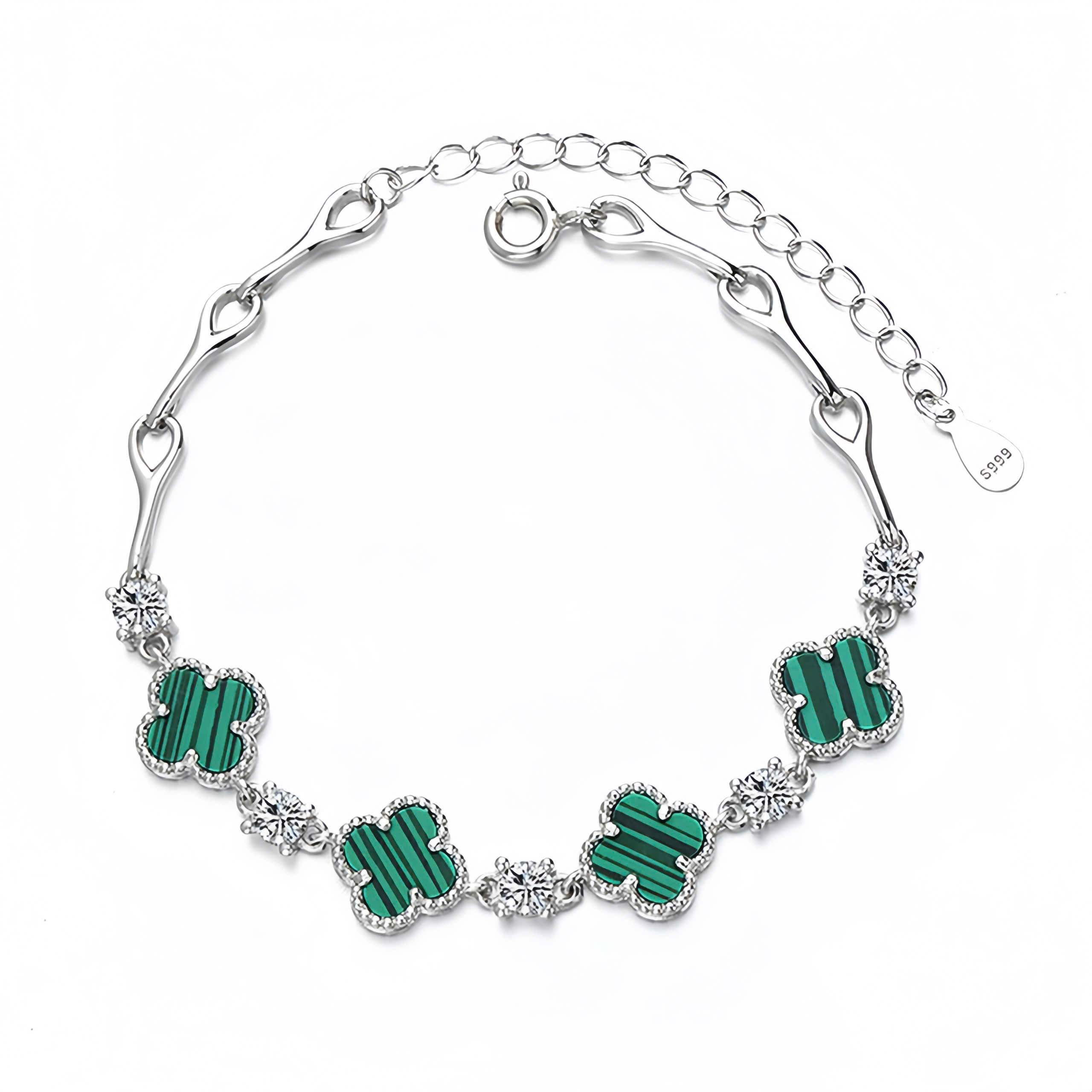 Lắc tay bạc nữ S925 phủ vàng 18K đính đá CZ hình cỏ 4 lá Julie