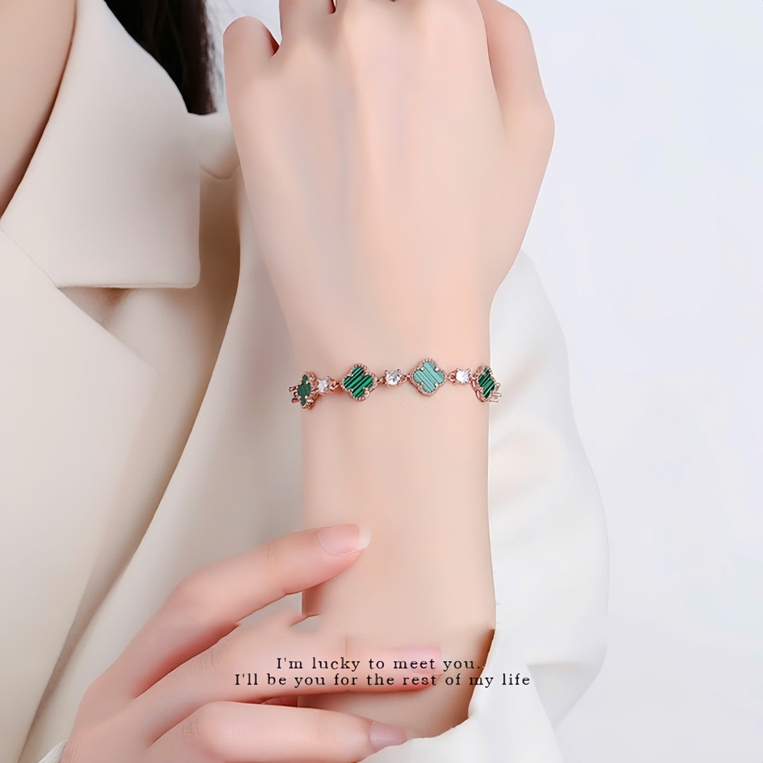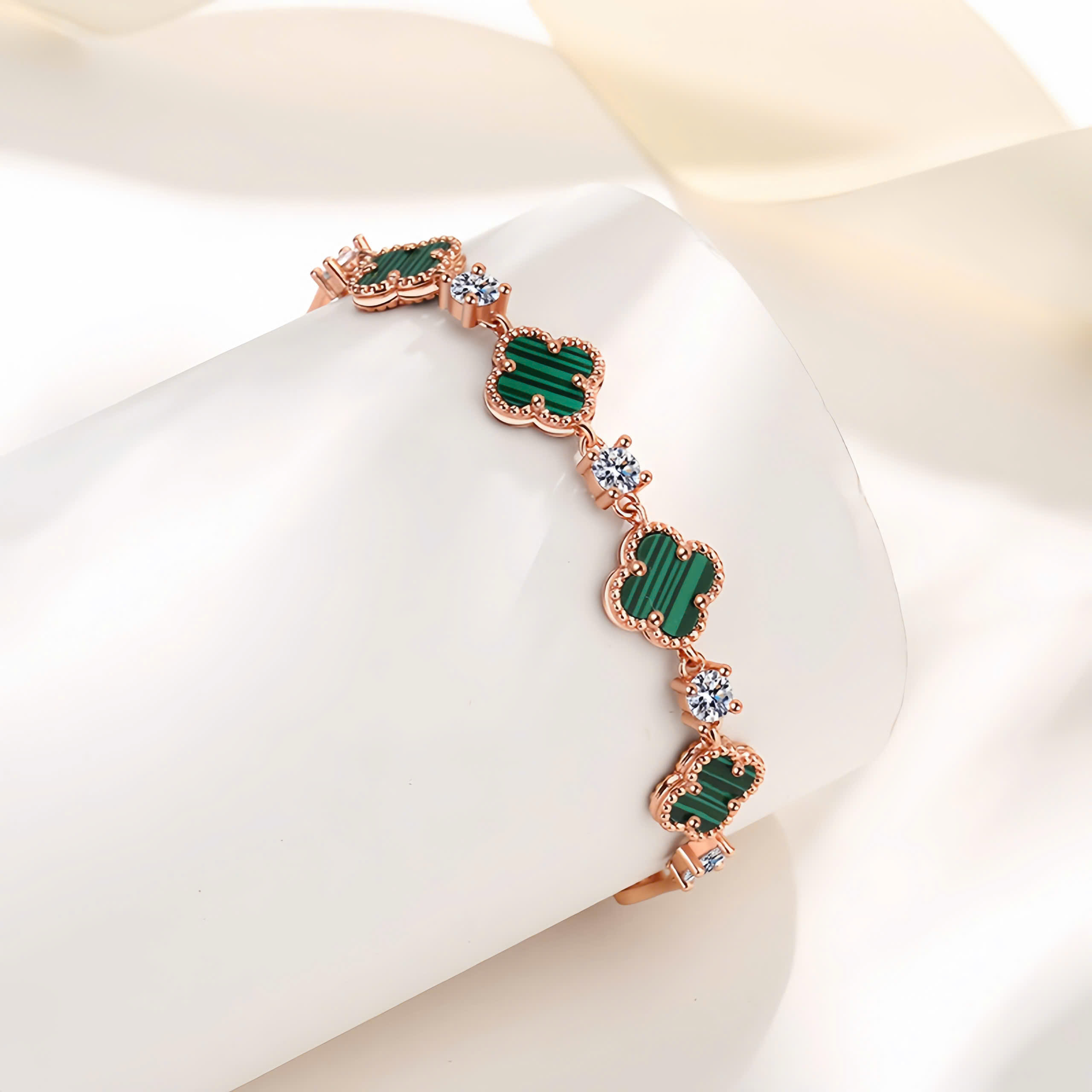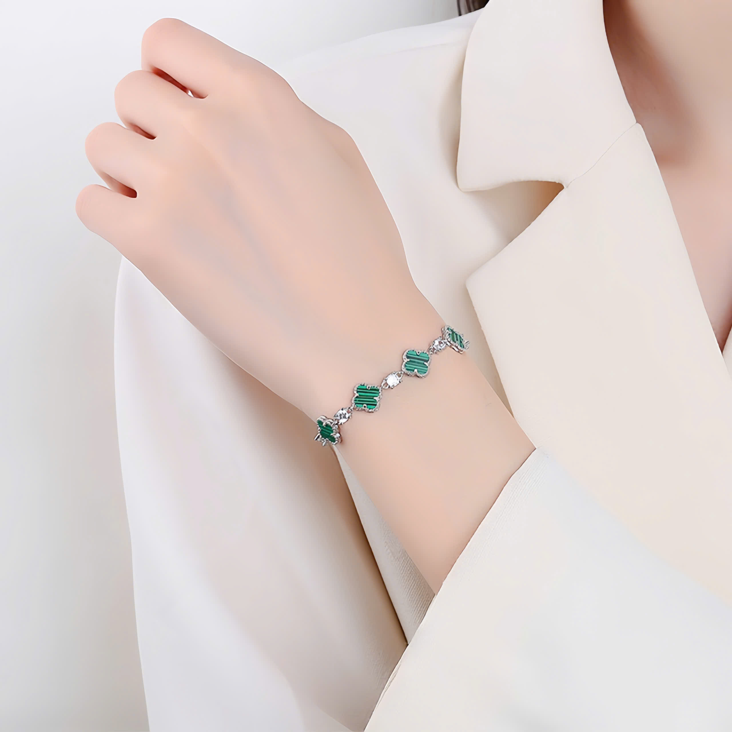 Lắc tay bạc nữ S925 phủ vàng 18K đính đá CZ hình cỏ 4 lá Julie