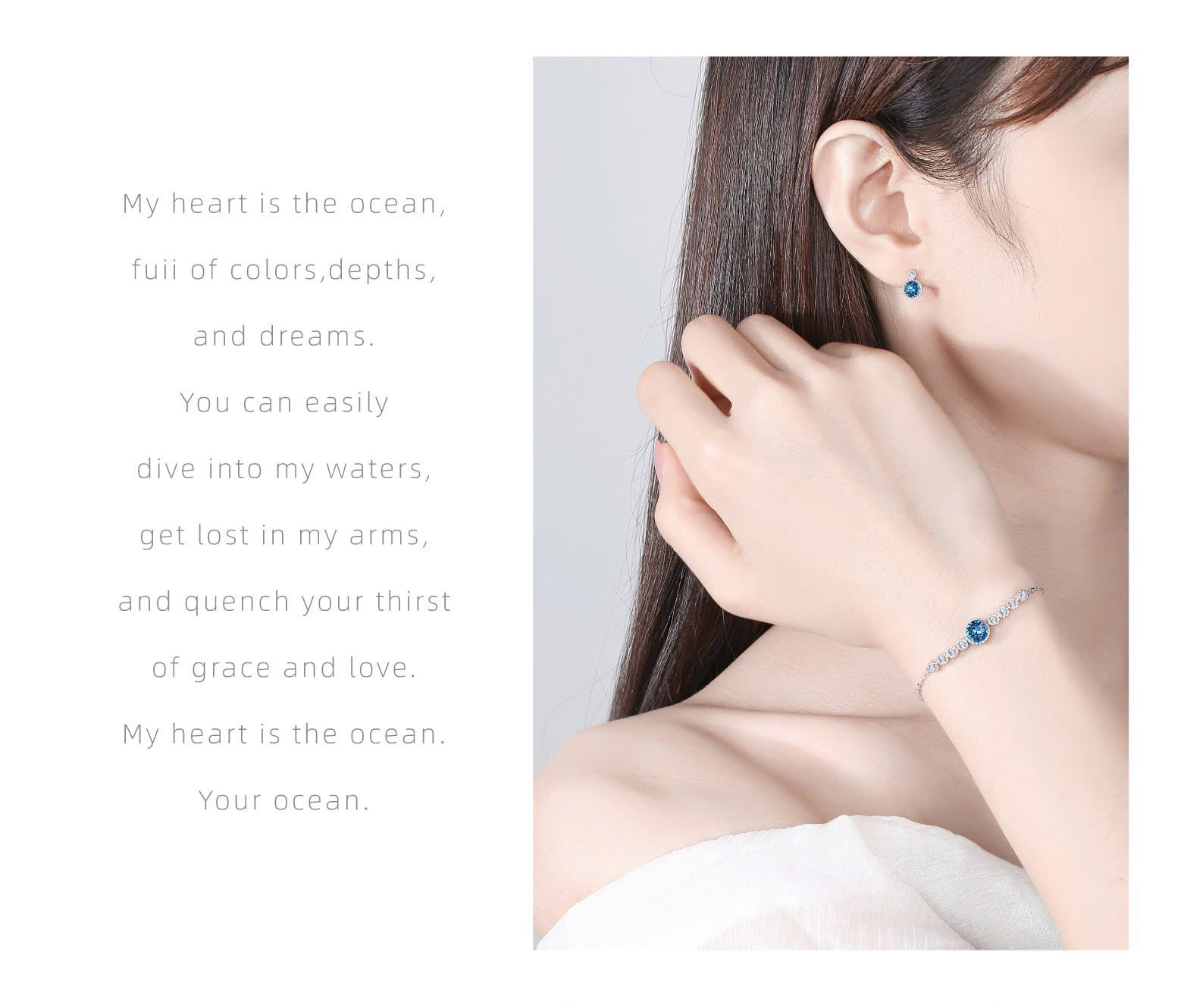 Lắc tay bạc nữ đính pha lê Swarovski trái tim của biển DLA579467