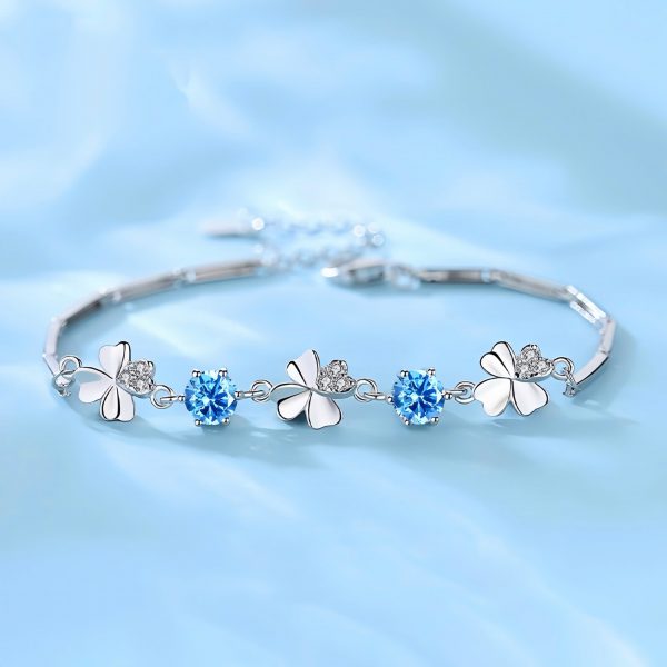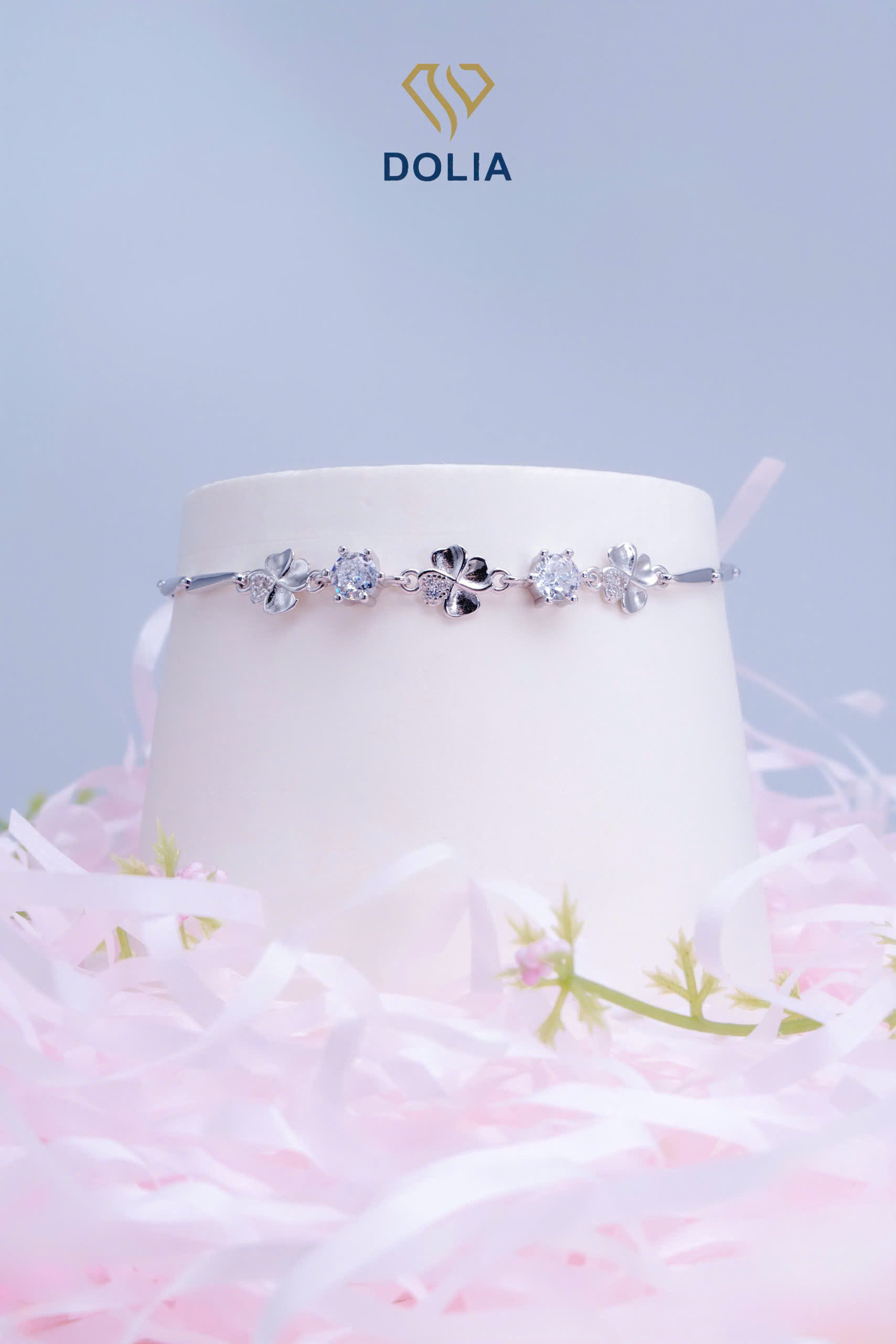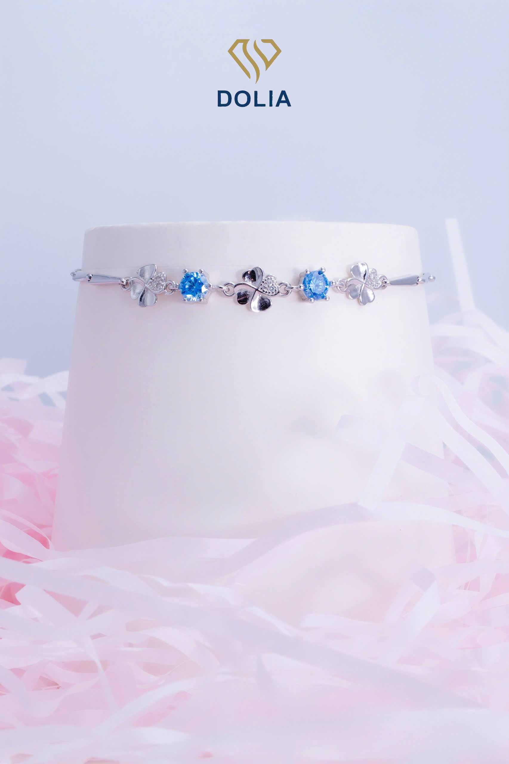 Thiết kế tinh tế với những viên đá CZ xanh long lanh kết hợp họa tiết cỏ 4 lá mềm mại, chiếc lắc tay mang đến vẻ đẹp thanh lịch và nữ tính. Cỏ 4 lá từ lâu được xem là biểu tượng của may mắn – hy vọng – niềm tin – tình yêu, giúp nàng thu hút năng lượng tích cực và sự bình an trong cuộc sống.