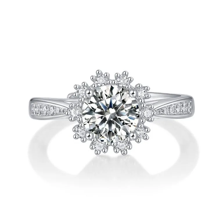 Nhẫn Bạc S925 Mạ Bạch Kim Đính Moissanite 1 Carat – Dịu Dàng & Năng Động