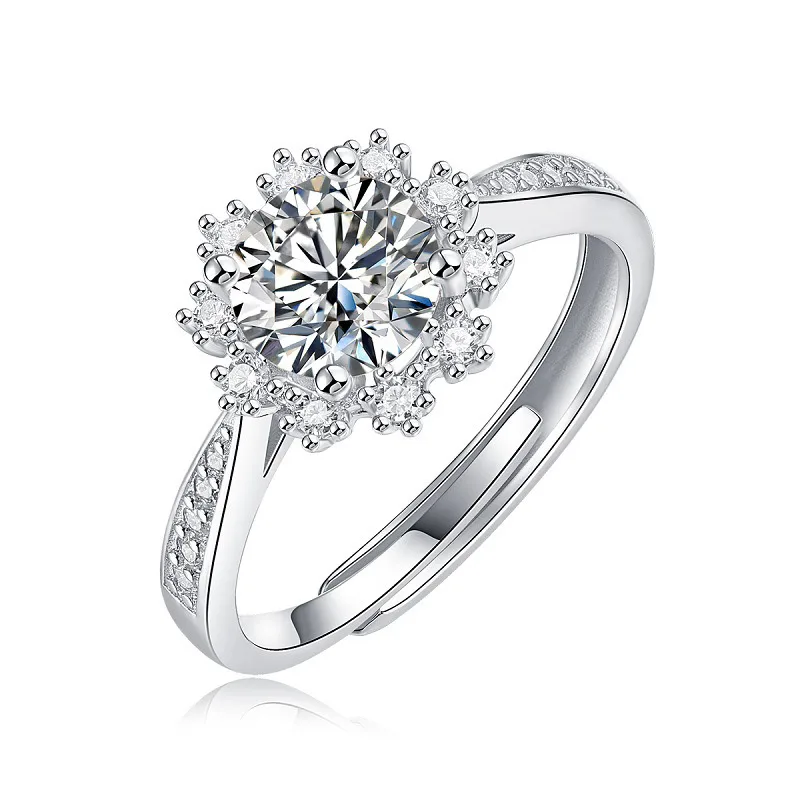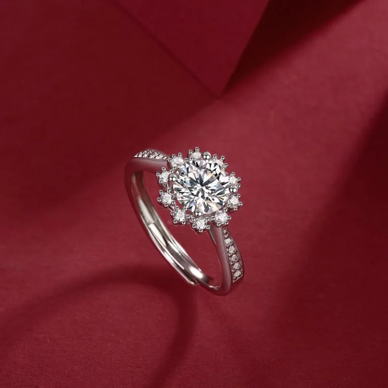 Nhẫn Bạc S925 Mạ Bạch Kim Đính Moissanite 1 Carat – Dịu Dàng & Năng Động