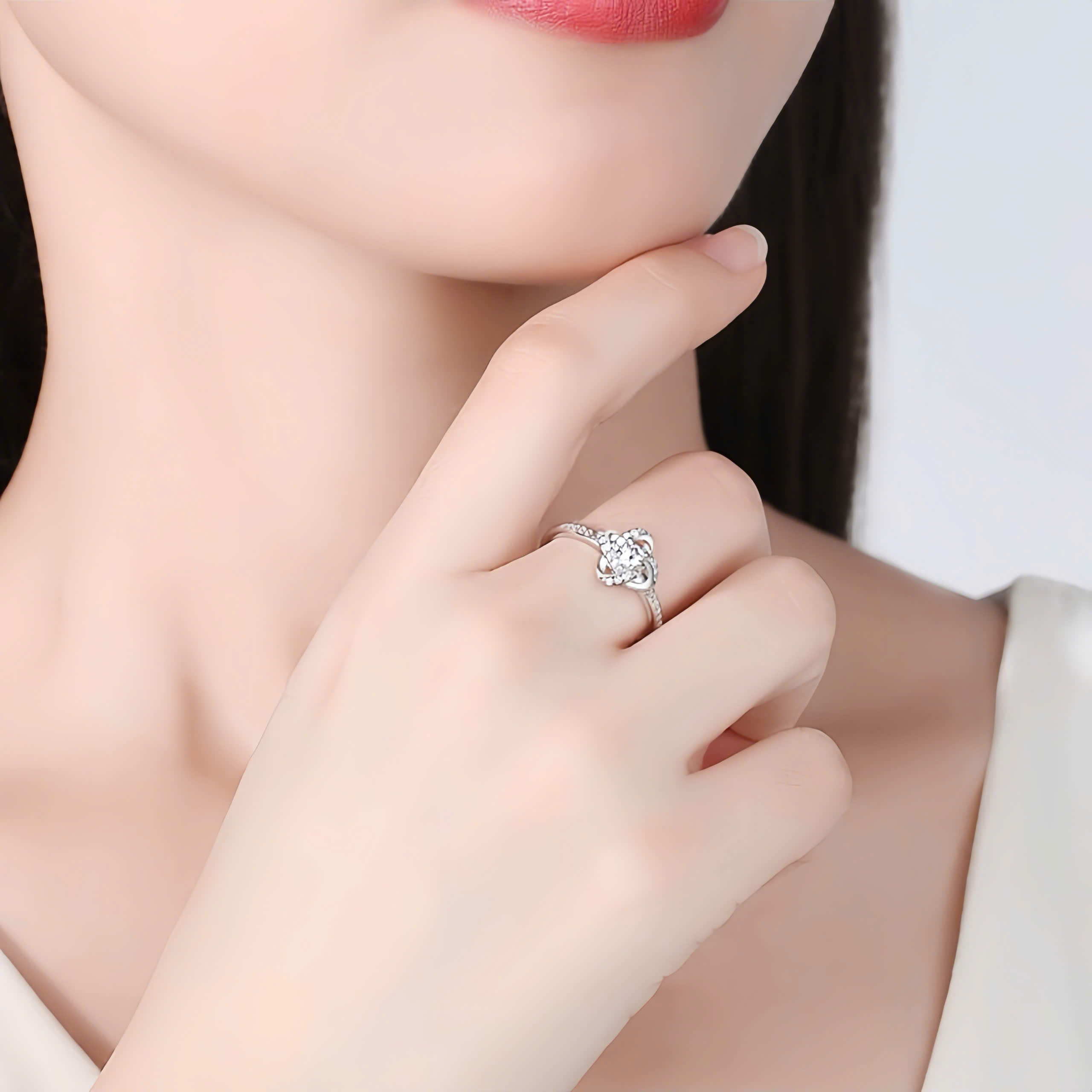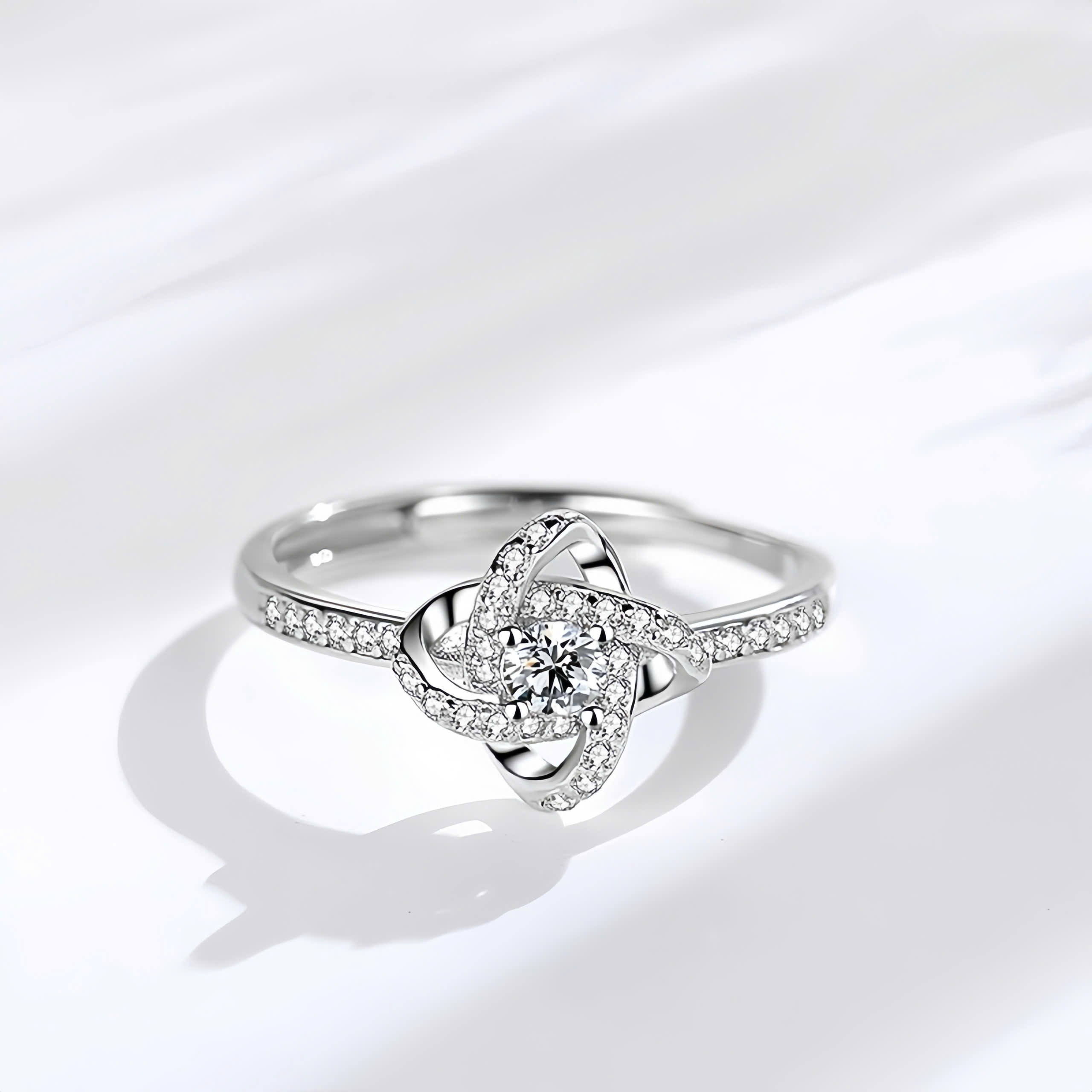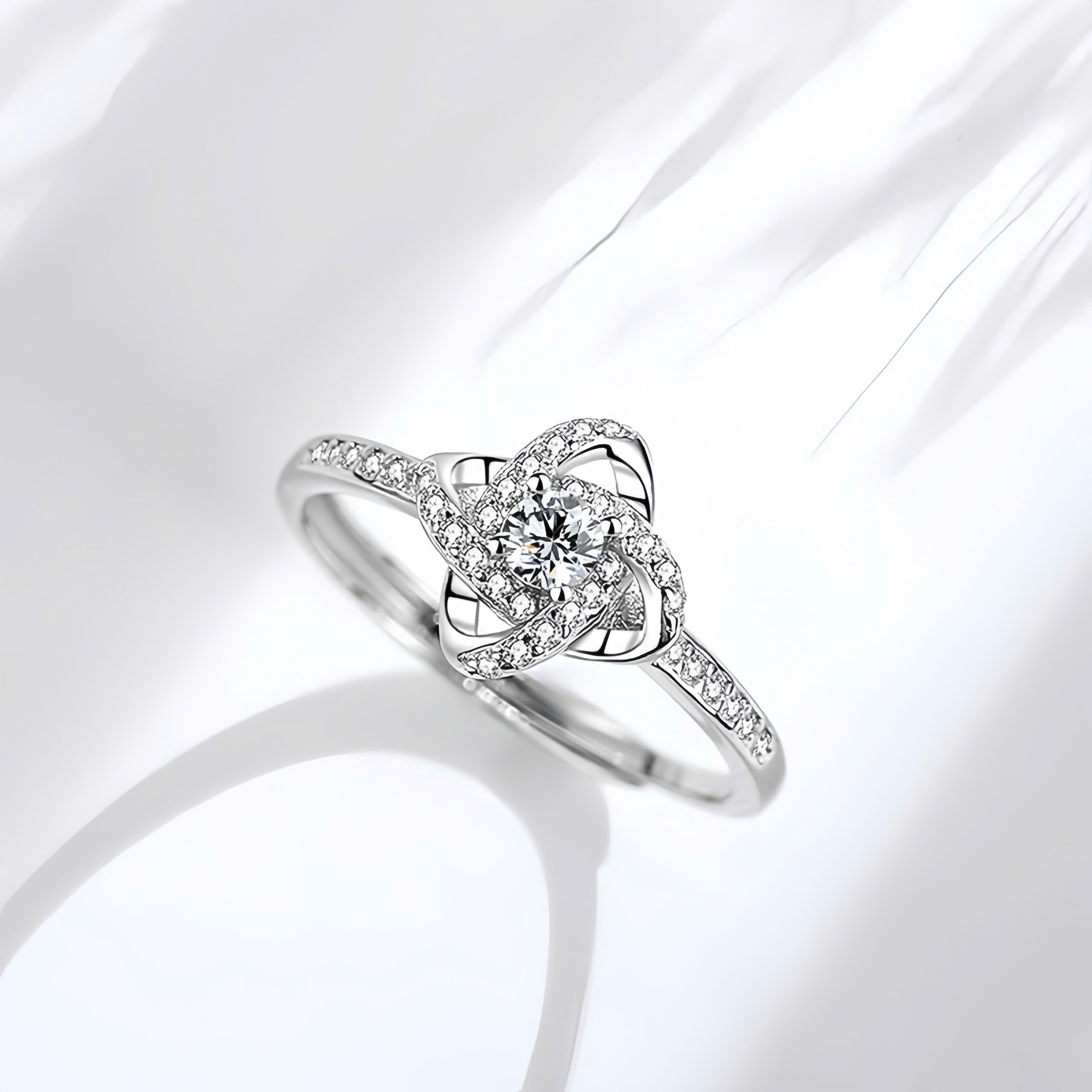 Nhẫn bạc nữ mạ bạch kim đính đá CZ cỏ 4 lá – DLA372838