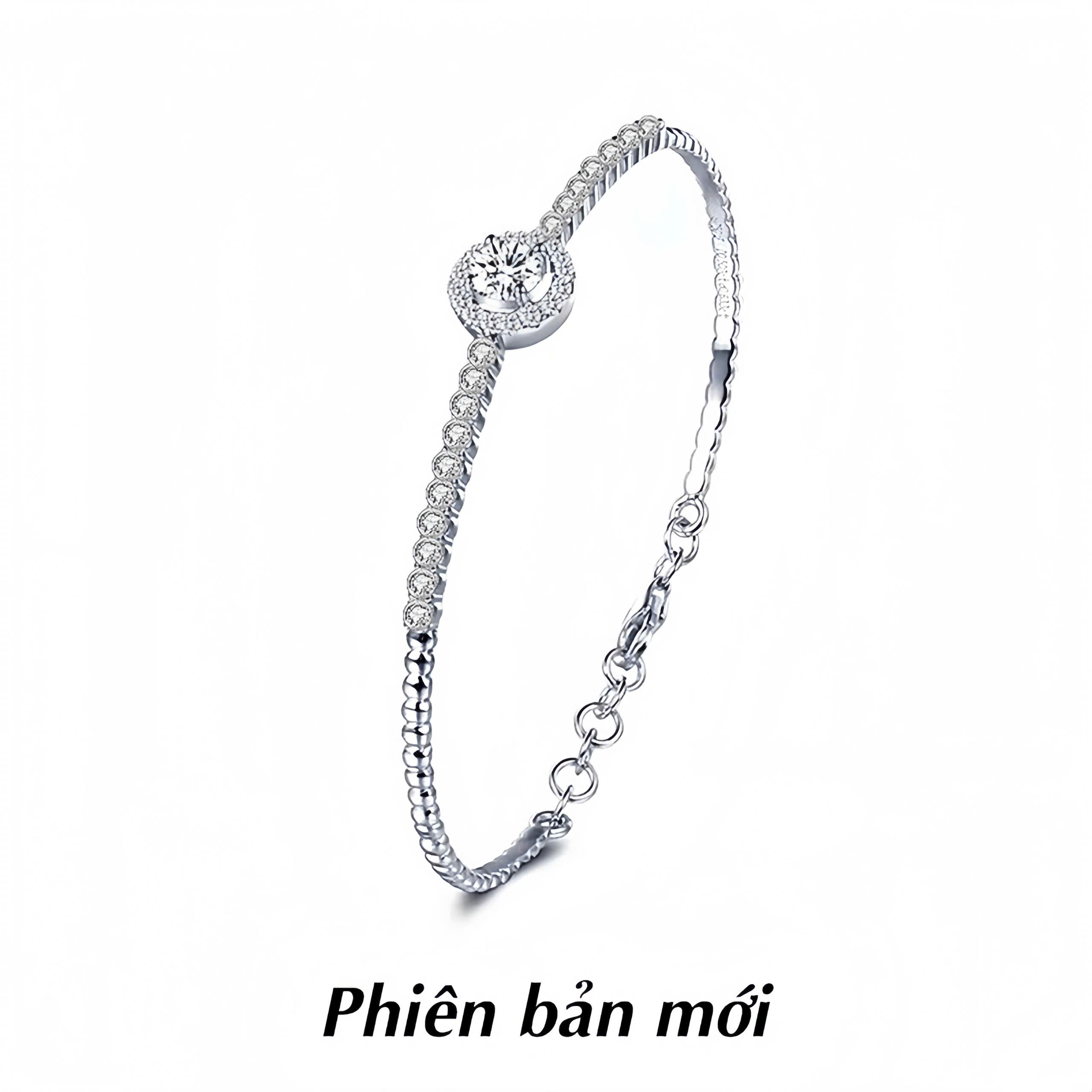 Hãy là người đầu tiên nhận xét “Vòng tay bạc nữ dạng kiềng đính kim cương Moissanite tròn Farah DLA054678”
