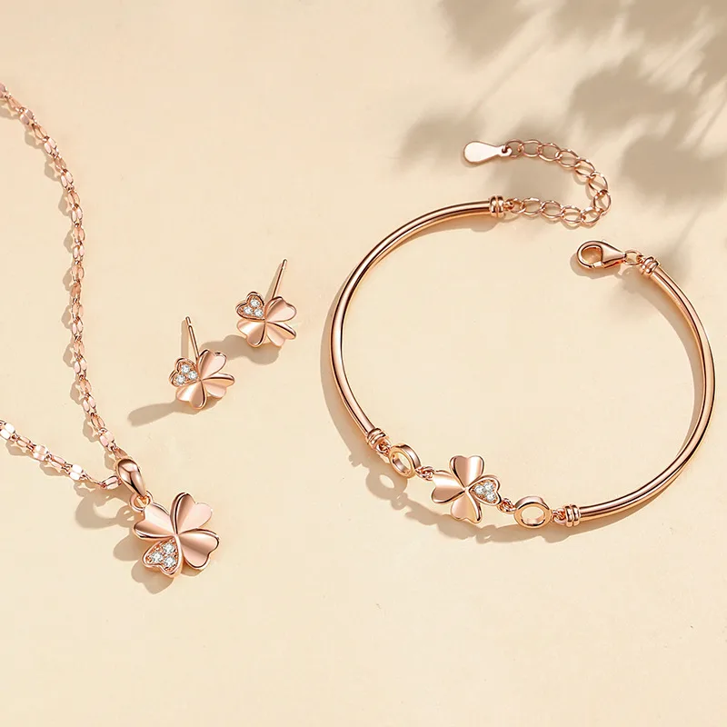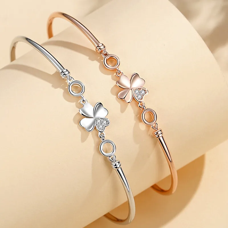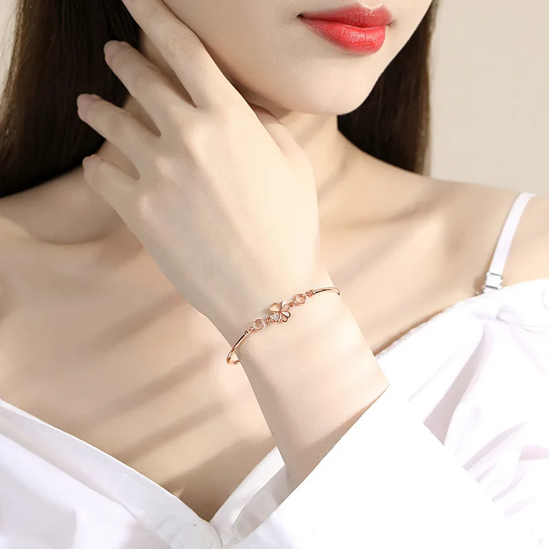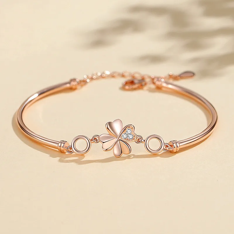 Lấy cảm hứng từ hình ảnh cỏ bốn lá – biểu tượng của may mắn, hy vọng và hạnh phúc, chiếc vòng tay mang đến vẻ đẹp tinh tế và ý nghĩa đặc biệt cho người đeo. Thiết kế cỏ bốn lá mềm mại kết hợp với đường nét thanh mảnh giúp tôn lên sự nữ tính, nhẹ nhàng nhưng vẫn vô cùng nổi bật.
