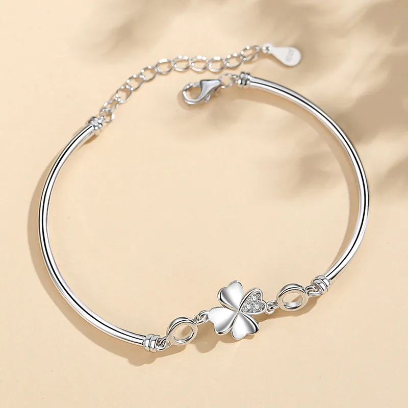 Vòng tay bạc nữ đính đá CZ hình cỏ 4 lá Jessie DLA097069 – Bạc S925 Cao Cấp